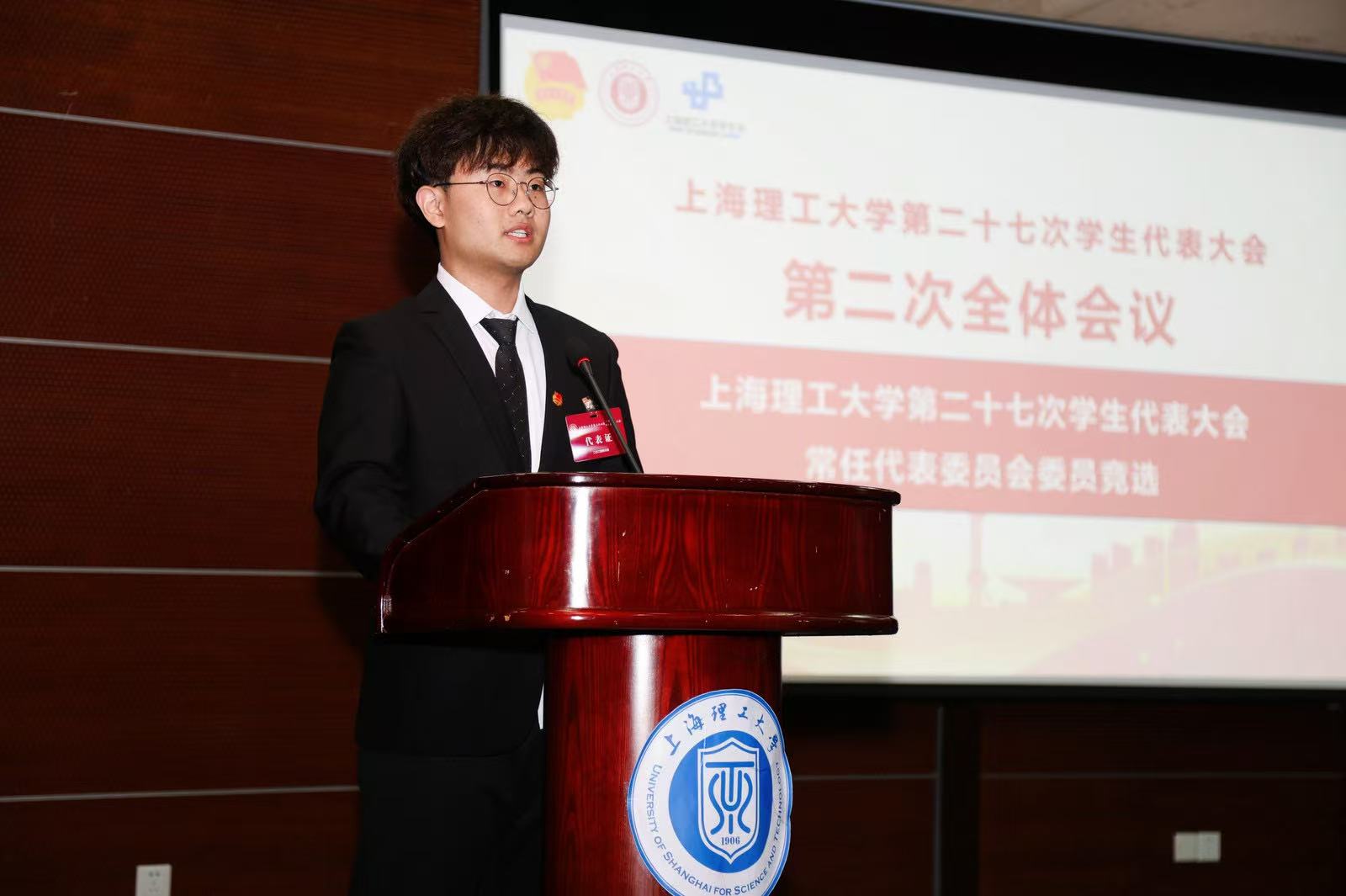 在担任上海理工大学第十五次团代会及第二十七次学代会学生代表期间,他积极履行代表职责,充分发挥桥梁纽带作用。会前,他通过座谈、问卷等多种形式,广泛征集同学们在学业发展、生活服务、校园建设等方面的宝贵意见;会中,他认真审议报告,并围绕同学们关切的议题踊跃发声、建言献策;会后,他及时传达会议精神,并积极跟进提案的落实。他始终将“从同学中来,到同学中去”的理念内化于心、外化于行,以真诚的服务赢得了同学们的信任。