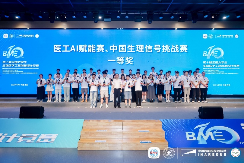 她所在的团队开发了"心龄智探"项目——一个基于深度学习的心电年龄预测系统。从数据处理到算法优化,从系统设计到用户体验,每个环节都经历了反复打磨。最终,该项目获得医工AI赛道一等奖全国第一名。作为获奖代表,团队在大会闭幕式暨颁奖仪式上分享了项目历程,在全国大学生生医工竞技的最高舞台上展现了上理学子的卓越风采。