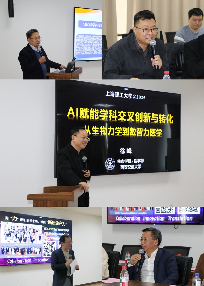 科研能力是推动高校高质量发展的重要引擎,人工智能是驱动学术创新的重要力量。2025年11月20日下午,西安交通大学医学部副主任、生命科学与技术学院院长徐峰教授应邀走进“BME创新发展系列讲堂”,作题为《AI赋能学科交叉创新与转化》的专题报告,旨在提高教师数字素养能力,助力教师科研创新和学术跃升。上海理工大学研究生院院长、学科办主任崔国民教授,健康科学与工程学院院长方亚鹏教授,校内外专家及师生慕名而来,报告由健康科学与工程学院副院长胥义教授主持。