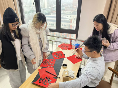 为弘扬中华优秀传统文化,让留校学子感受传统民俗的魅力,活动专门设置了拓印福字、剪纸等沉浸式民俗体验环节。拓印福字区里,同学们手持滚刷、蘸取油墨,均匀涂抹在福字模板上,再轻轻铺上红纸,用手慢慢按压、抚平,一幅幅色泽鲜亮、字迹工整的福字渐渐成型,每一笔都承载着大家对新年的美好期盼。剪纸区里,同学们手持剪刀、巧手翻飞,凝神构思、精细裁剪,骏马纹样、吉祥窗花、春字剪纸等一件件精美作品纷纷出炉。学子们互相展示自己的作品、交流创作技巧,分享剪纸过程中的乐趣与感悟,脸上满是成就感与幸福感。