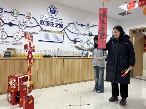 活动现场张灯结彩、暖意盎然,浓浓的年味扑面而来。投壶体验区里,师生们轮番上阵、凝神聚力,手持箭矢瞄准壶口,或稳扎稳打、或大胆尝试,偶尔的失误引得众人善意欢笑,精准的投入则收获阵阵喝彩,古老的民俗游戏让大家在趣味比拼中感受传统魅力。