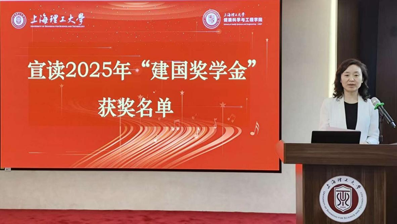 上海理工大学建国奖学金是由上海市建国社会公益基金会在我校教育发展基金会设立的专项基金,旨在支持生命科学及大健康领域相关人才培养,更好地为国家的经济社会发展服务。本年度共评出75名优秀学生(包括本科生、硕士研究生和博士研究生)获“建国奖学金”。