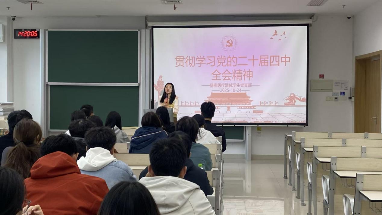 为深入学习贯彻党的二十届四中全会精神,精密医疗器械学生党支部于10月24日下午开展学习党的二十届四中全会精神暨“拼党史聚力量向未来”主题党日活动。精密医疗器械学生党支部书记鲁梦玲、党员及入党积极分子参加活动。