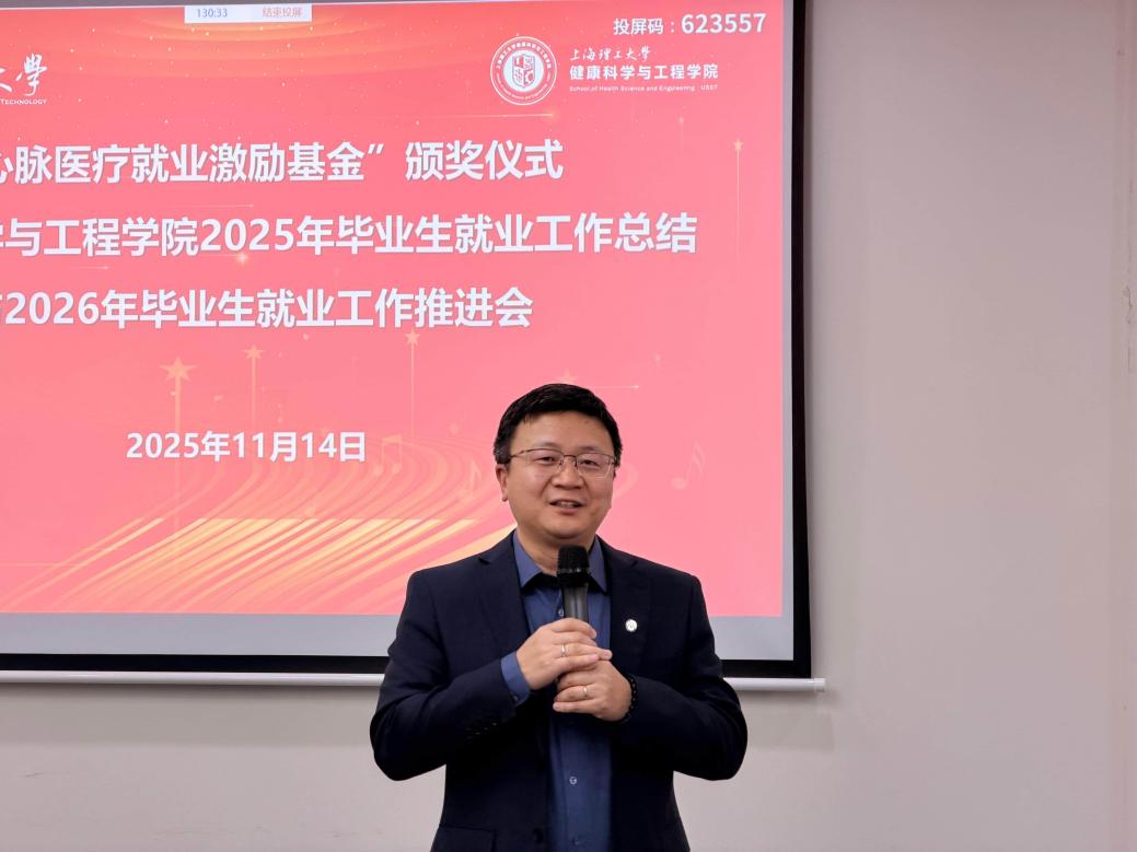 11月14日,上海理工大学“心脉医疗就业激励基金”颁奖仪式暨健康科学与工程学院2025届毕业生就业工作总结与2026届毕业生就业工作启动会,在上海微创心脉医疗科技(集团)股份有限公司总部圆满举行。这次会议既是一次总结会、表彰会,更是一次动员会、推进会。健康学院党委书记姚秀雯、副书记李陈财、副院长崔海坡,各系主任、专业负责人、获奖教师代表、毕业班辅导员;以及心脉医疗董事、总裁朱清,心脉医疗品质、注册与临床资深总监、党支部书记冯晓钰,人力资本与行业高级总监张国盈,事务部总监奚菊红等企业代表等,齐聚一堂,共话人才培养与校企合作。会议由李陈财主持。