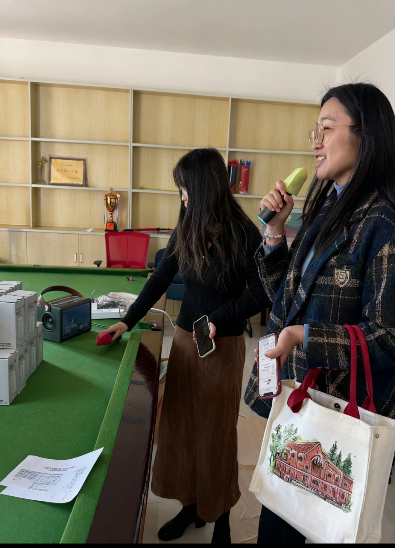 本次活动突破了传统形式,特别配备了多样化的休闲健身设备。触屏K歌系统前,歌声此起彼伏,老师们一展歌喉,释放激情;室内引体向上与拉伸器材区域,大家舒展筋骨,活动脉络,缓解了久坐的疲劳;仰卧起坐训练器则成为了考验核心力量的趣味挑战点。尤为值得一提的是,舒适的单人休闲按摩椅备受青睐,为辛勤的老师们提供了片刻的深度放松。