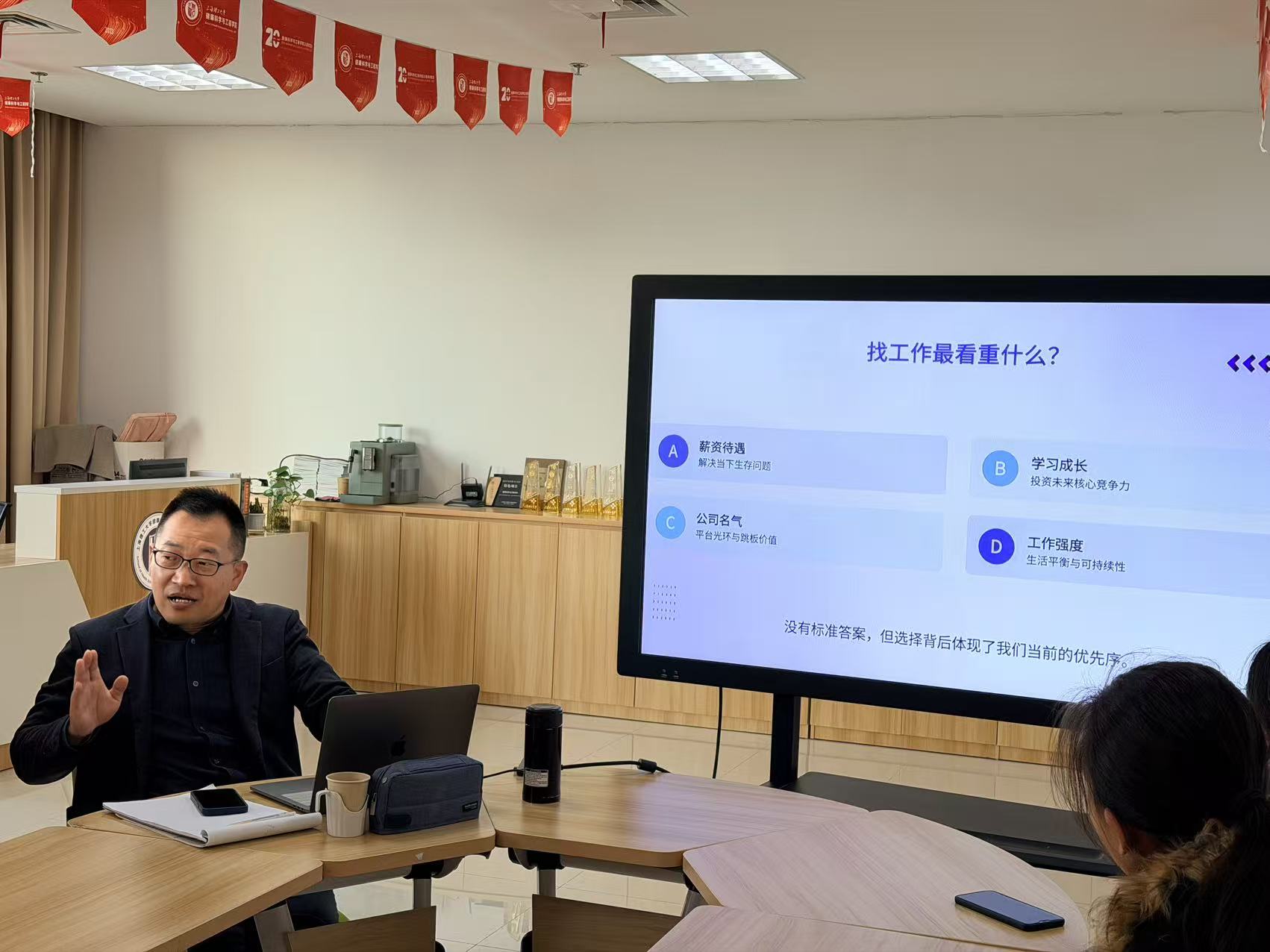 为充分发挥校友育人作用,加强青年学生对行业发展的认知教育,11月26日,健康学院举行“校友领航、赋能就业”活动。学院校友会副会长黄占锋以“从校园到职场:医疗器械行业的成长与突破”为主题,围绕职业规划、行业趋势、求职技能等方面为在校生做了专题报告,并与学生开展了深入交流研讨。