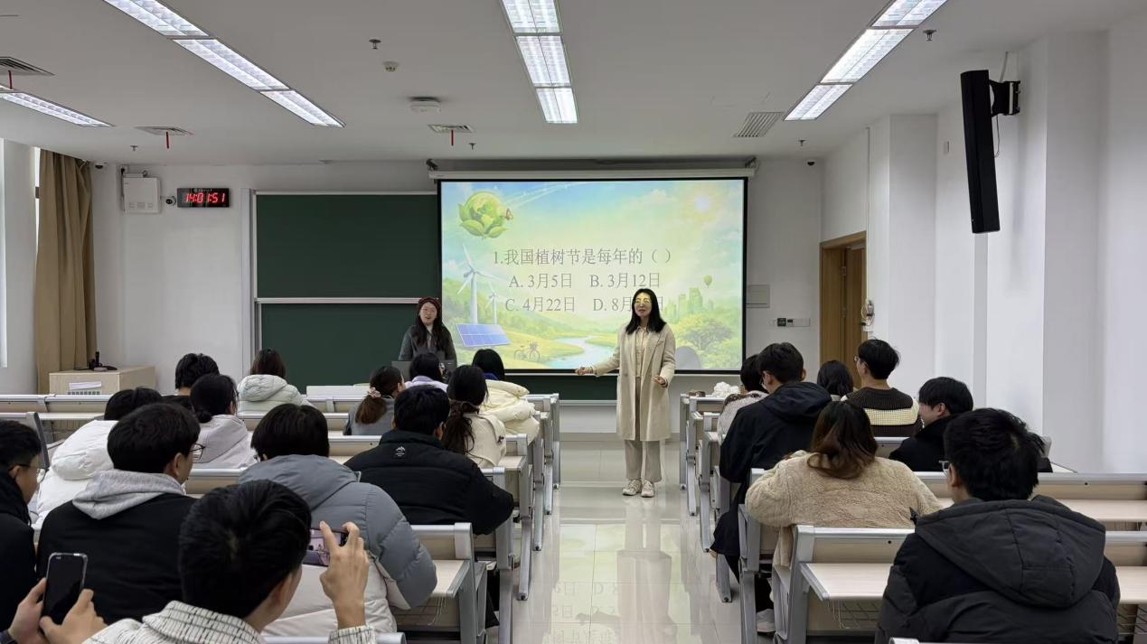 活动现场气氛热烈,绿色环保知识竞答环节紧张有序。党支部准备的题目紧扣绿色生态,涵盖习近平生态文明思想、植树造林知识、生态环境保护、绿色低碳生活等内容,既有理论深度,又贴近学生实际。大家在台下都争先恐后地踊跃作答,充分展现了新时代学生党员扎实的环保知识储备。