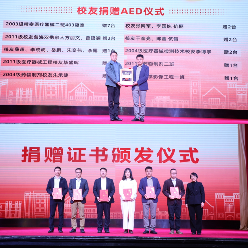 捐赠过程中,校友们充分发挥专业优势,从设备选型、质量把控到规格适配,全程亲力亲为,筛选符合校园应急需求、操作便捷、性能可靠的优质设备,努力让每一台AED都成为经得起考验的“生命守护者”。他们表示,毕业多年,母校的培育始终铭记于心,恰逢120周年校庆,能以捐赠AED的方式反哺母校,既是对母校培育之恩的回馈,也是作为医疗器械从业者践行社会责任的具体体现,更希望能用专业力量为母校师生营造安全的校园环境。